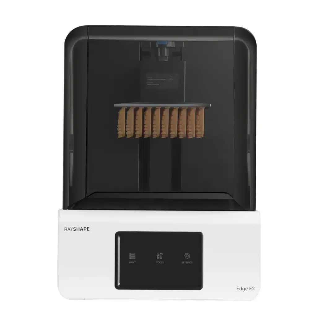 Rayshape Edge E2 je visoko zmogljiv LCD 3D tiskalnik, zasnovan posebej za zobozdravstvene aplikacije. Omogoča hitro in natančno izdelavo več kot 20 različnih dentalnih indikacij, kot so opornice, modeli, alignerji, krone, mostički, kirurški vodniki in proteze.